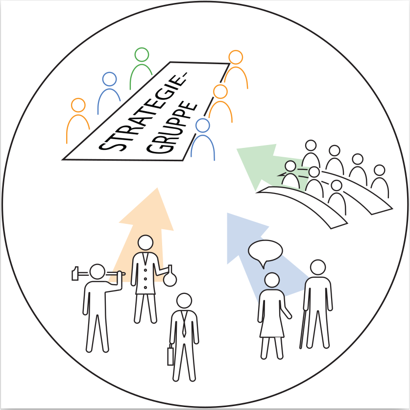 Strategiegruppe als Fortsetzung des Beirats, der den KBR intensiv begleitet hatte, mit Vertreter:innen aus Politik, Verwaltung, Wirtschaft, Zivilgesellschaft und ehemaligen KBR-Teilnehmenden: Wo stehen wir? Sind wir noch auf dem richtigen Weg? Welche neuen Ideen und Impulse gibt es? Wen braucht es noch mit im Boot? (geplant)