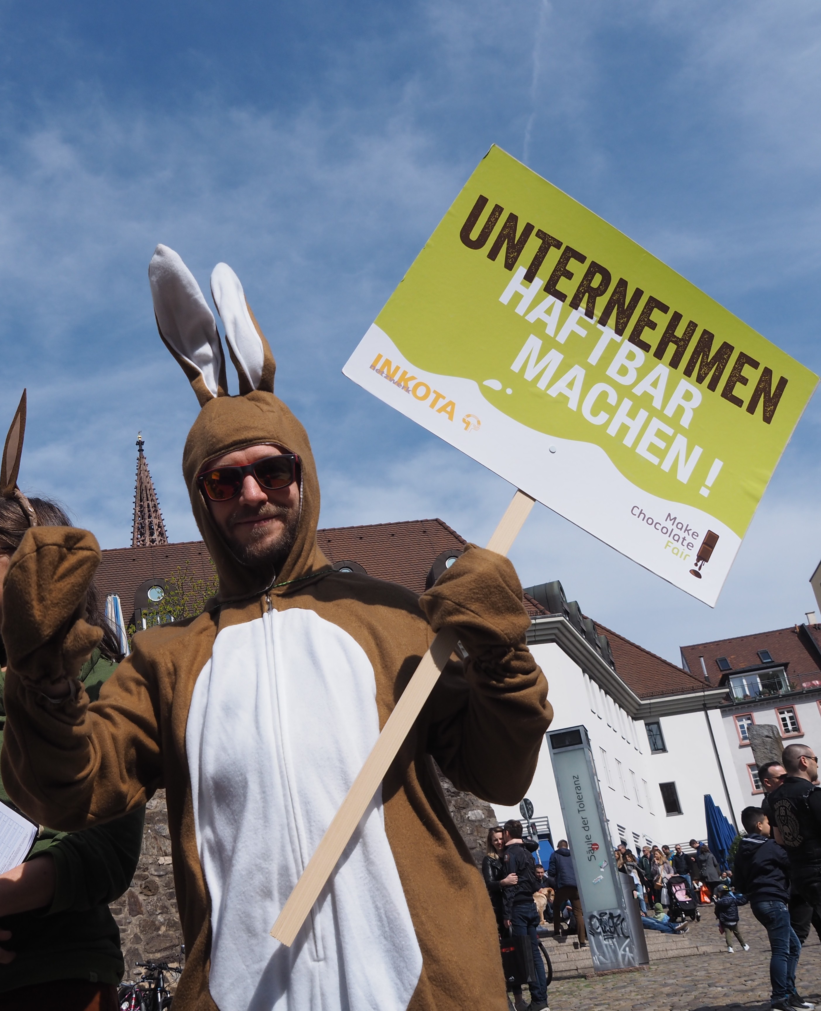 Oder ich frage mein Lieblingscafé, ob sie fairen Kaffee im Laden haben. Wenn Cafés in Freiburg plötzlich vermehrt Anfragen bekommen, ob der Kaffee fair ist und die Kunden dorthin gehen, wo der Kaffee fair ist, dann ändert sich die Nachfrage. Dann kaufen die Cafés anders ein und dann ändert sich die Nachfrage auf dem Weltmarkt. Da hat jeder einzelne auch Macht durch seinen Geldbeutel.