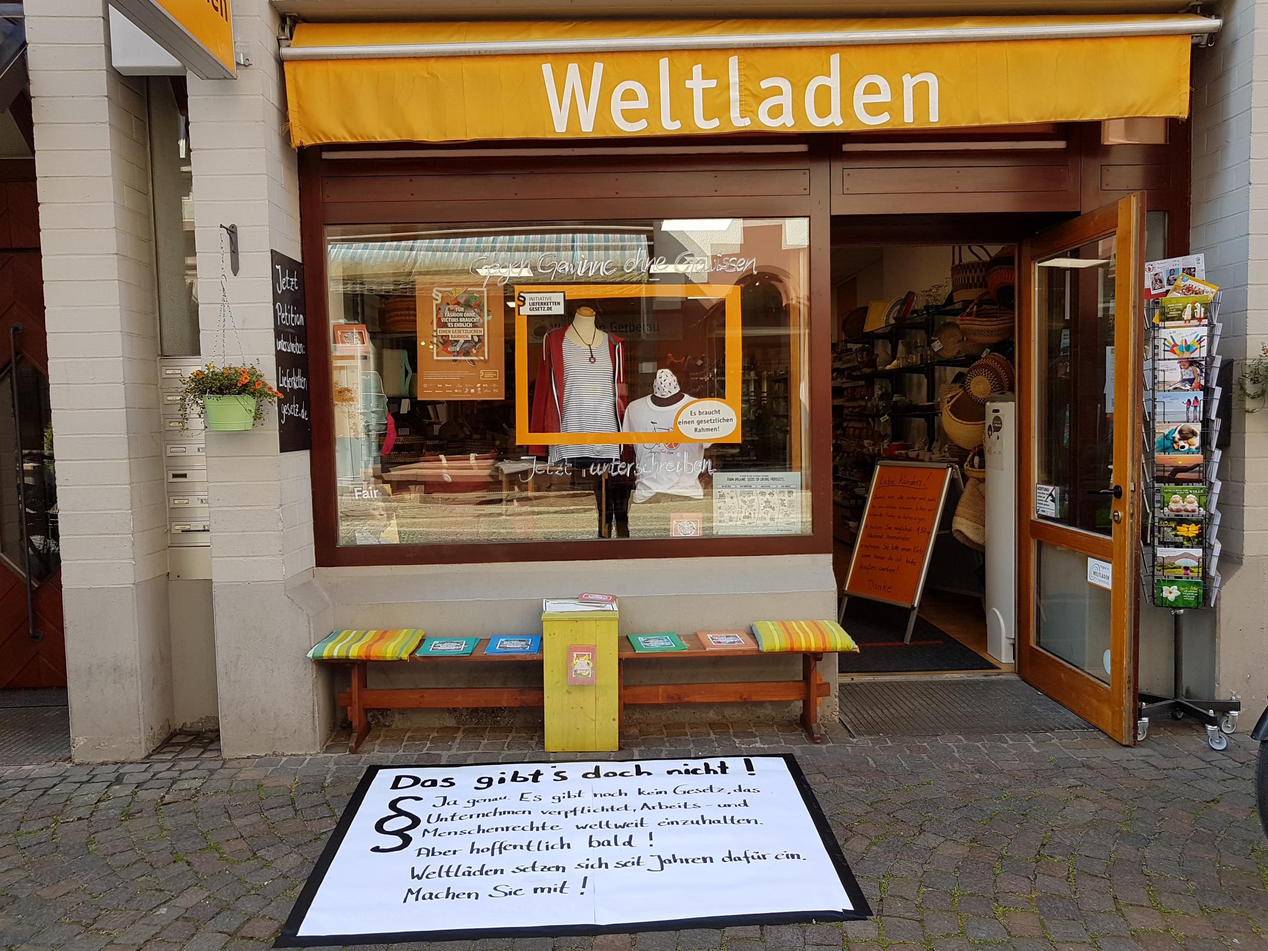 Im Moment gibt es eine europaweite Kampagne zum Lieferkettengesetz mit vielen Akteuren wie dem Weltladendachverband, Brot für die Welt etc. In diesem Rahmen gab es auch eine große Aktion zum Weltladentag am 9. Mai. Wir vom Weltladen haben auch Unterschriften gesammelt. Man kann immer noch bei uns im Laden oder auf der Webseite Lieferkettengesetz.de unterschreiben.