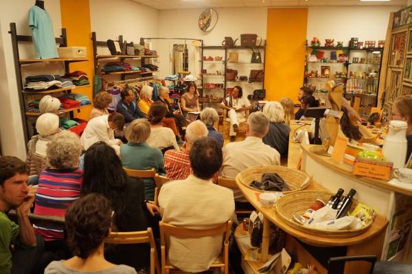 Außerdem gibt es Lieferantenbesuche, die von den großen Handelspartnern organisiert werden. Wir hatten zum Beispiel ein Projekt aus Palästina. Vor zwei Jahren waren zwei Frauen aus diesem Projekt in Deutschland und haben berichtet, was sich geändert hat seit sie in der Kooperative sind und im fairen Handel mitarbeiten. Eine Arbeiterin hat erzählt, dass zwei ihrer Kinder jetzt studieren, was vorher nicht denkbar gewesen wäre.