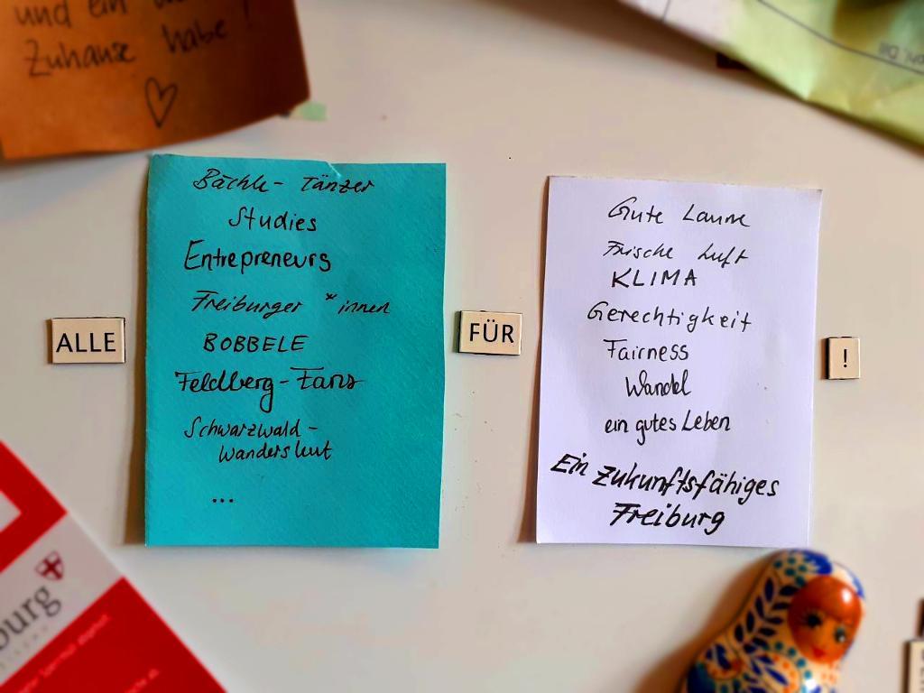 Ich freue mich, dass wir unsere „komm-geh-mit-mir-wählen“ - Postkartenaktion am Laufen haben und ich bin gespannt was sich daraus noch ergibt. Ich freue mich, dass wir im Team zusammen immer wieder Neues ausprobieren und über die Aktionen lachen können, die in die Hose gehen. Dass wir im kleinen das betreiben, was wir uns im großen für Freiburg wünschen: