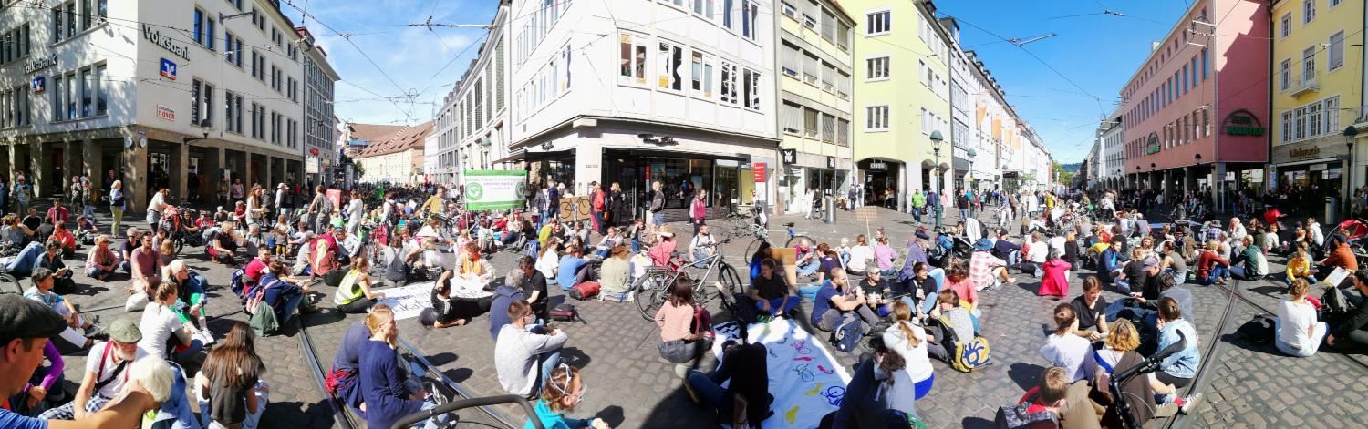 Der Streik begann mit einem Schulsturm. Die Aktivistis von Fridays For Future besuchten an dem Morgen 13 Schulen (laut BZ) im Freiburger Stadtgebiet und mobilisierten die Schüler*innen dort für den Streik.