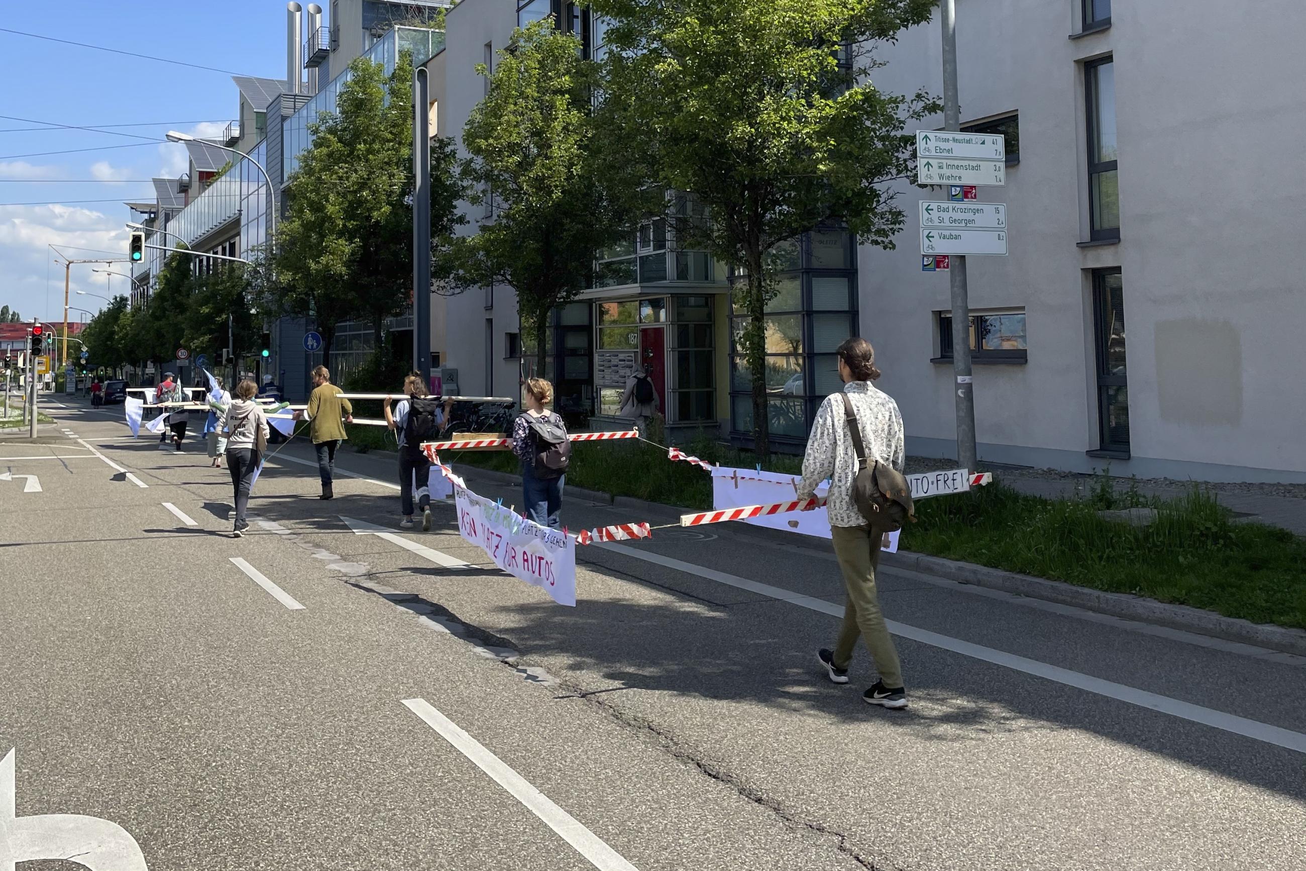 Eine Premiere: Zum ersten Mal fand in Freiburg ein Sternmarsch mit Gehzeugen statt, um auf den Platzverbrauch durch Autos im öffentlichen Raum aufmerksam zu machen und um für eine Verkehrswende zu demonstrieren.