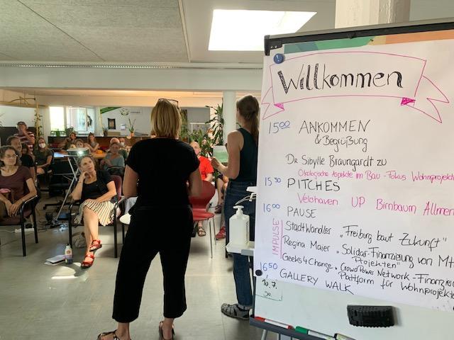 Das Wohnprojekt Allmende veranstaltete zusammen mit StadtWandler Freiburg und Unterstützung von Wohnprojekten und dem Mietshäuser Syndikat einen Themennachmittag "Gemeinschaftliche Wohnprojekte - so gebraucht wie nie". Die Veranstaltung fand am Samstag, 9. Juli 2022, im Haus des Engagements statt. Unter dem Motto "Mehr Solidarität und Klimaschutz durch Wohnprojekte - so geht's konkret." stellten sich vier Wohnprojekte in Form von kurzen Pitches (Präsentationen) vor.